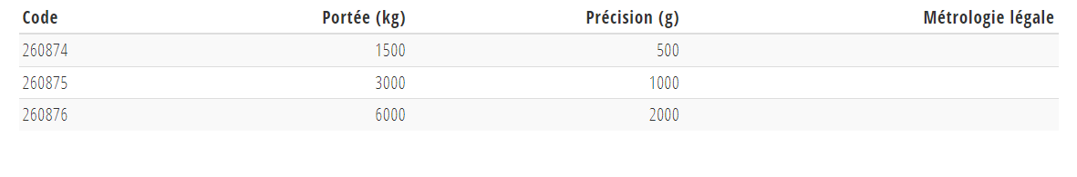 | Capacité | 1500kg, 3000kg, 6000kg |